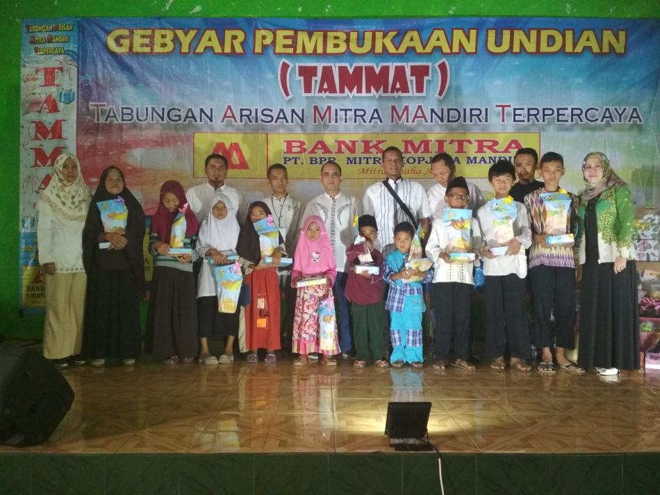 Disela pengundian Tabungan Arisan Mitra Mandiri Terpercaya (TAMMAT), BPR Mitra Kopjaya Mandiri melakukan santunan anak yatim. Dalam Ramadhan tahun ini, Bank Mitra, perusahaan yang bergerak di bidang keuangan dan perbankkan, mengambil tema, Berbagi Berkah Ramadhan, Hadirkan Senyum untuk Sahabat.